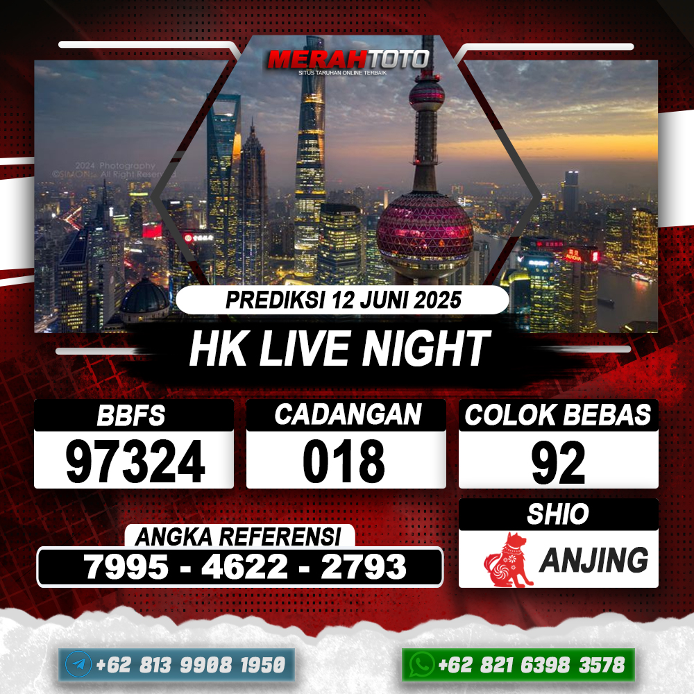 Prediksi HK LIVE NIGHT 12 Juni 2025 – Selamat Datang di Situs Prediksi Togel Online Akurat dan Resmi MERAHTOTO. Permainan Togel atau Toto – Gelap ini telah lama menarik perhatian dan banyak dimainkan oleh para bettor. Sejak dulu permainan togel dimainkan dengan memasang taruhan angka dengan bandar darat yang tersedia di daerah masing – masing. Namun sekarang ini dengan perkembangan teknologi yang semakin maju, para bettor bisa menikmati permainan togel secara online. Anda bisa menemukan banyaknya Situs Bandar Togel Online yang menyediakan layanan pemasangan angka togel secara praktis. Dimana masing – masing situs bandar togel online resmi dan terpercaya tentu menyediakan layanan dan keuntungan yang berbeda – beda untuk Anda.