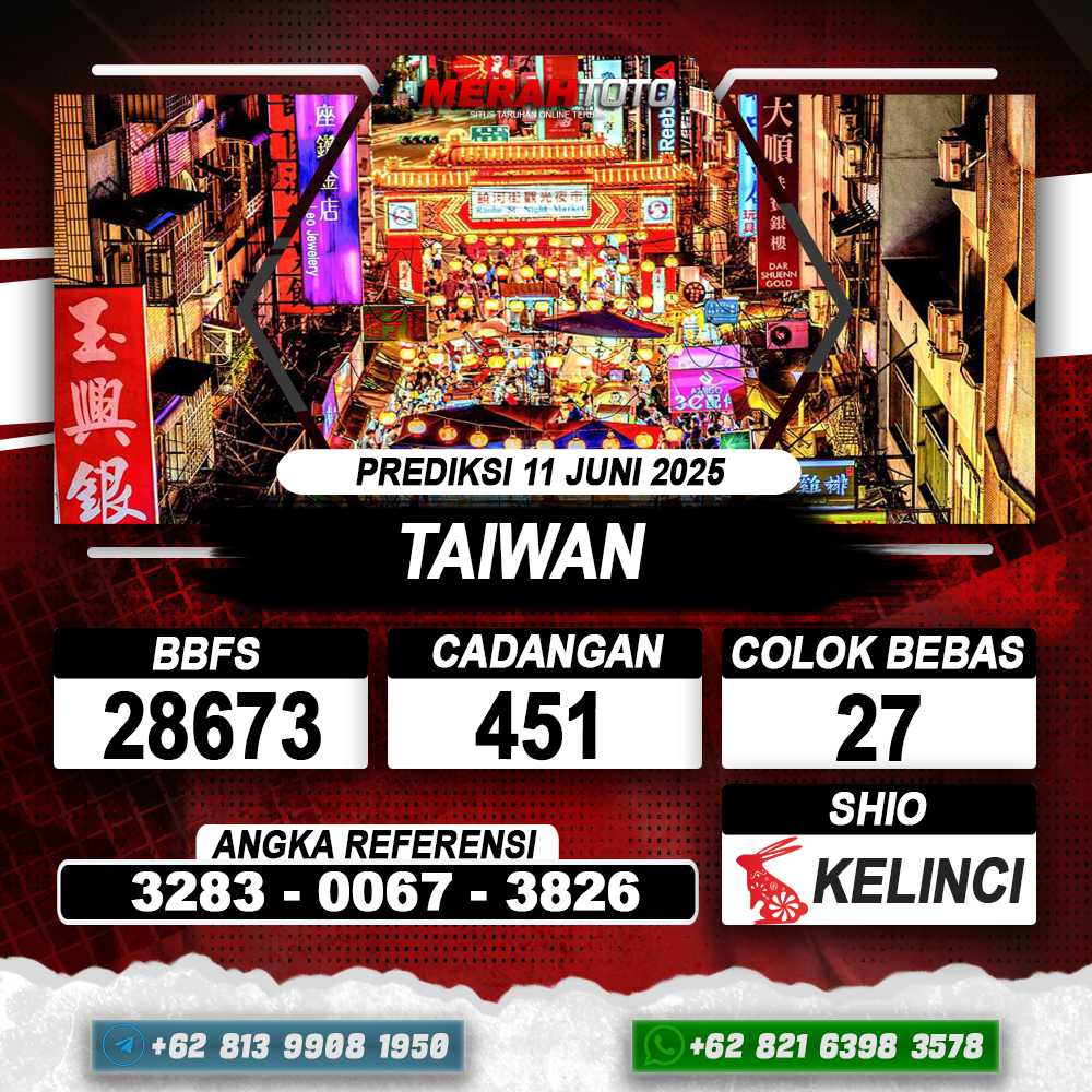 Prediksi TAIWAN 11 Juni 2025 – Selamat Datang di Situs Prediksi Togel Online Akurat dan Resmi MERAHTOTO. Permainan Togel atau Toto – Gelap ini telah lama menarik perhatian dan banyak dimainkan oleh para bettor. Sejak dulu permainan togel dimainkan dengan memasang taruhan angka dengan bandar darat yang tersedia di daerah masing – masing. Namun sekarang ini dengan perkembangan teknologi yang semakin maju, para bettor bisa menikmati permainan togel secara online. Anda bisa menemukan banyaknya Situs Bandar Togel Online yang menyediakan layanan pemasangan angka togel secara praktis. Dimana masing – masing situs bandar togel online resmi dan terpercaya tentu menyediakan layanan dan keuntungan yang berbeda – beda untuk Anda.